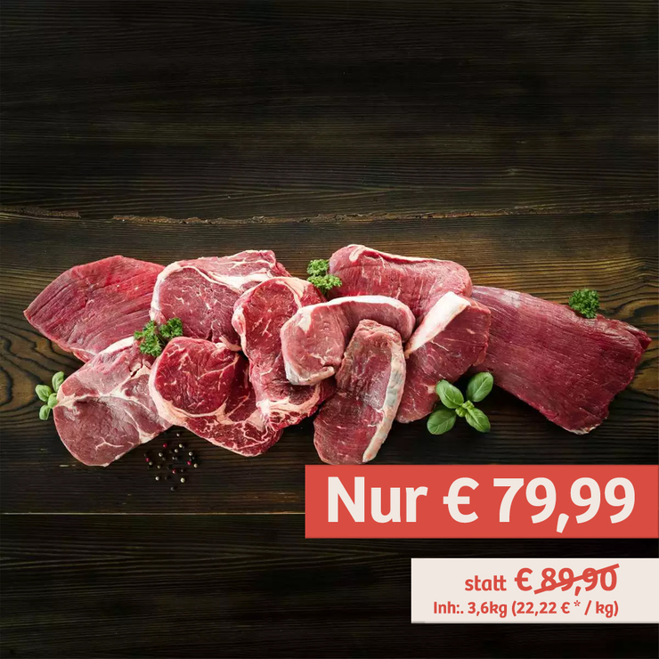 | | | Grill Paket DELUXE für 10 Personen 3,6 kg XXL, da gibt´s was für den Hunger! Lecker, saftige Steaks in absoluter Spitzenqualität! 3,6 kg bestes Fleisch, da freuen sich nicht nur die Gäste, da bekommt auch Ihr Grill mal ordenltich zu tun! Sommer, Sonne, XXL-Genuss! | | | | | | Gönn-Dir Paket Für alle die sich in diesen schwierigen Zeiten mal was gönnen möchten: WurstBarons Gönn-Dir Paket! | | | |